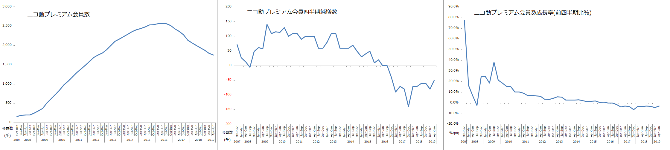 そろそろ興味は失せてるし今回の決算はそれ以外のネタが強いんだとは思いますが、恒例のニコ動のプレミアム会員数の動向など。