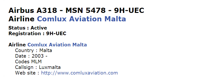 本当ですね、オペレータを換えただけですかね。Comluxって本部はチューリヒみたいですが、運航基地がサンマリノ、マルタ、カザフスタン、アルバ、となかなかシブい配置。