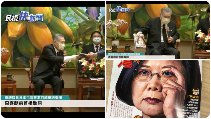 蔡英文総統にも喜んでいただけているようで、何よりです。それにしても、何と言って見せているんだろう?そこが気になります(笑)民進党の友人からいただいたテレビ画面です。#蔡英文 #森喜朗 #李登輝 #ビッグコミック #taiwan pic.twitter.com/eJ2PrWgNbj