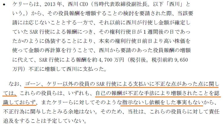 ゴーン・ケリーに関しては検察の筋立てと同じで、それ以外の者は全員潔白で「不正行為に関与する余地はない」の部分を強調して既成事実化したいだけでしょ? pic.twitter.com/Bo26k3MRcK
