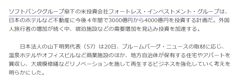 なお、フォートレスは、今年2月に日本での投資積極化する旨の記事がありました。https://t.co/m3BnAV955Y