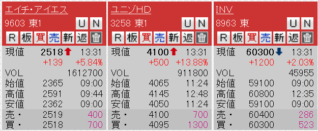 HIS、TOB失敗織り込み&ユニゾ株の含み益で強いね