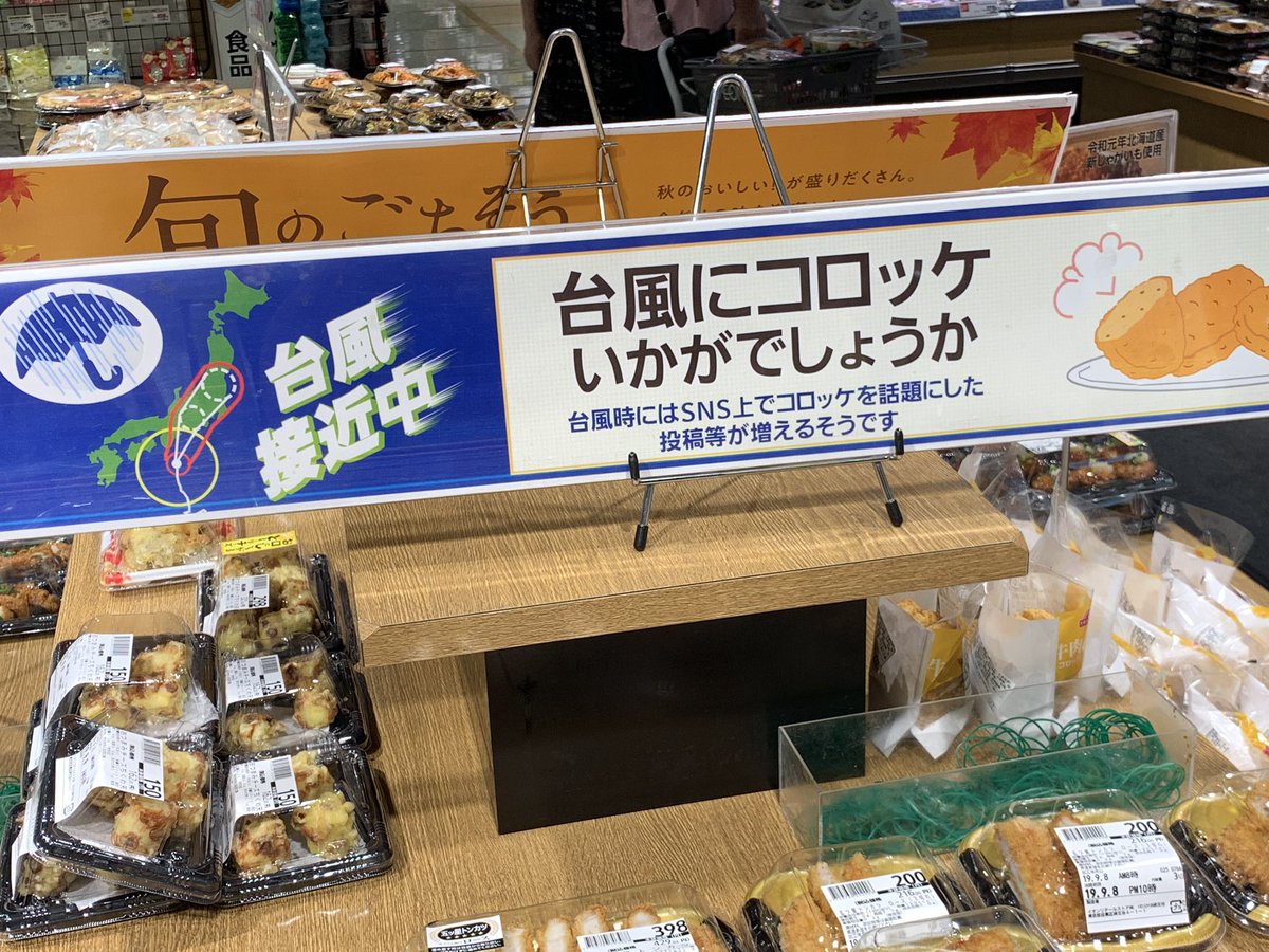 台風時にはSNS上でコロッケの話題が増える。台風とコロッケの因果関係知りたい。#イオン pic.twitter.com/akPxEy4rOK
