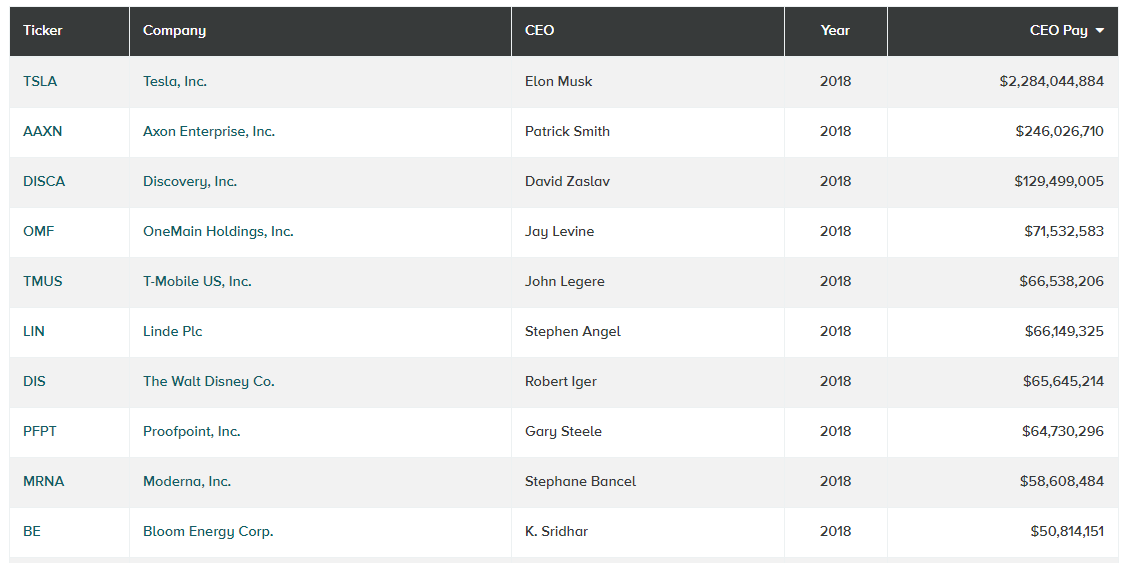 ちなみにバンセルCEOが叩き出した2018年の報酬額5860万ドルは、同年の高額報酬CEOランキングで堂々の9位にランクインしてる。まあこのランキングだと、どちらかと言えばイーロン・マスクの報酬額のやばさが際立ってしまうが…https://t.co/DPI9eqfZ4B pic.twitter.com/0RX2QjhFeB