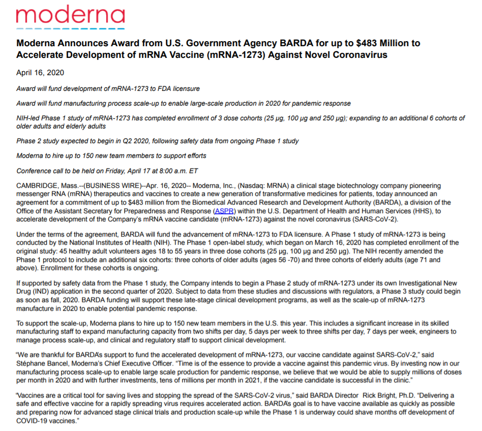 ちなみに話題のmodernaですが「過去10年間何の実績も上げてないクソバイオ」という声もありまして