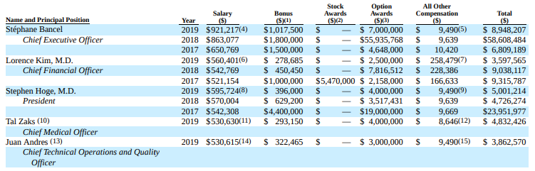 こっちもなかなか凄い数字だった。バンセルCEOが2019年に受け取った報酬は約900万ドルで、経営陣5人の報酬を合わせると2624万ドルにもなる。5億ドル以上の赤字を出してる企業にしては大盤振る舞いやなwhttps://t.co/TVXPGzLPG0 pic.twitter.com/QkJRgCruRr