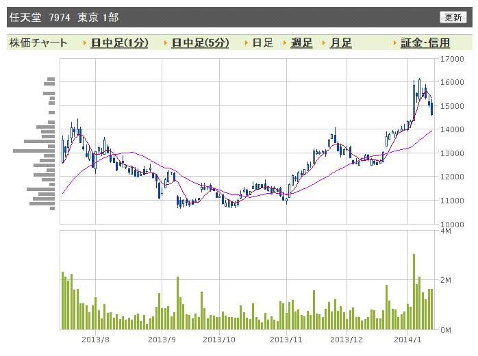 任天堂暴騰>任天堂格下げ>任天堂下方修正、配当引き下げ、見事です(何が
