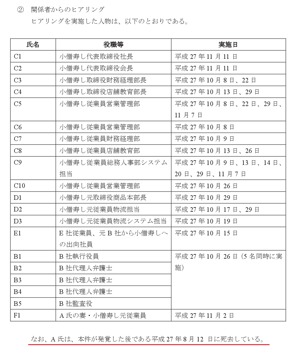 小僧寿しの架空発注、逮捕されてる前社長の就任と同時に始まって退任するまで続いてるんだな。ヒアリング対象に入ってないけど関わってないわけないよなぁ。実行犯と目される人が全員死去済みとか闇すぎる