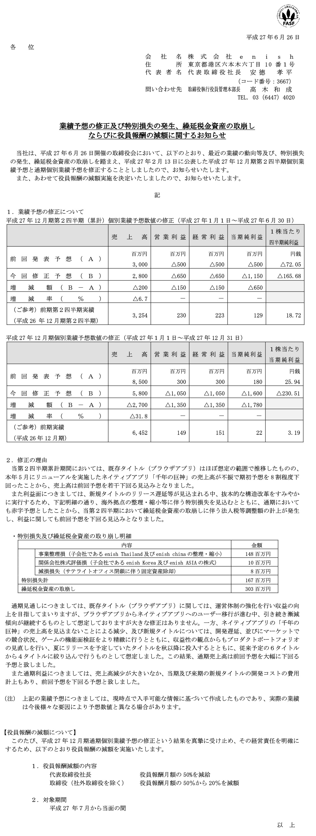 ヒルズ族の新入りenishに“六本木ヒルズの法則”発動、最高益だったはずの業績予想が売上以外ぜんぶゼロに http://t.co/vnUQBRJAPi