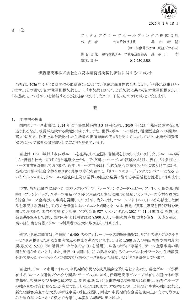 ブックオフと伊藤忠が資本業務提携でファミマを活用て