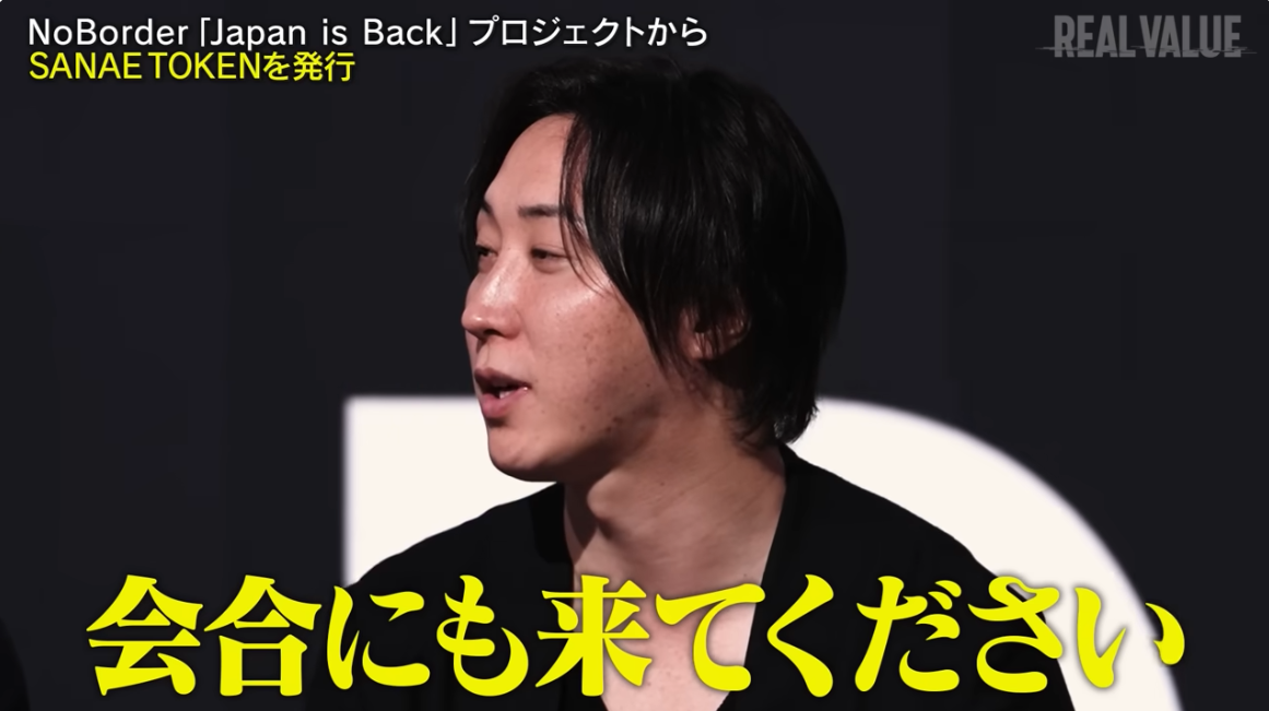 リアルバリュー運営の1人である溝口勇児氏。番組でたまにキレてる(演技?)キャラ。サナエトークンのネーミング普通に考えればありえなくアウトなんだけど、溝口氏が裸の王様となり誰もモノを言えない状態になってるからゴーサイン出ちゃったのかなと思ったり。